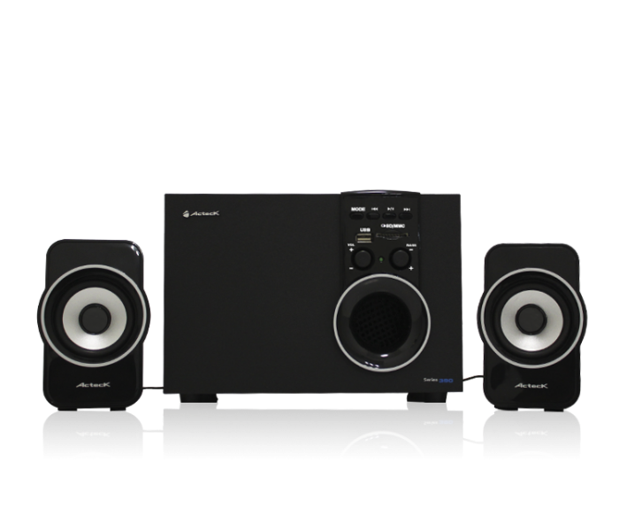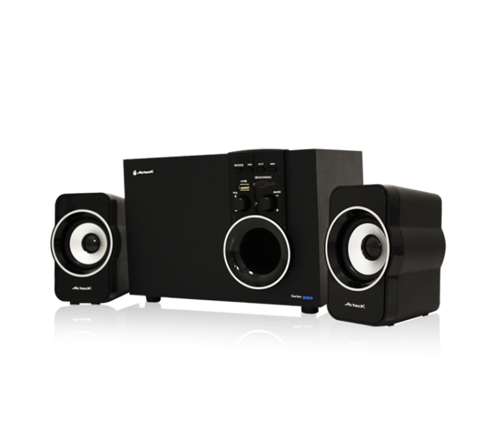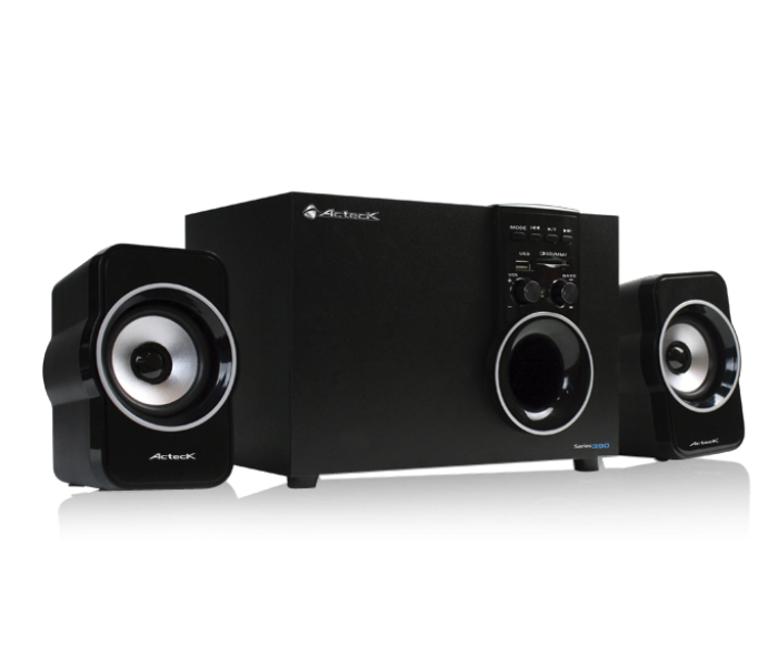 El sonido que merece tu espacio. El sistema de audio Series 390 de Acteck es ideal para complementar tu laptop, PC o reproductor MP3 en casa. Las Series 390 ofrecen audio en 2.1 canales para enfatizar tu música con su poderoso bajo y excelentes satélites. Las Series 390 están equipadas para leer tarjetas de memoria y USBs, y podrás conectarlas a cualquier dispositivo con salida auxiliar de 3.5mm, por lo que podrás usarlas con un sinfín de reproductores de música. Además, el diseńo innovador de las Series 390 de Acteck complementa cualquier espacio elegantemente.